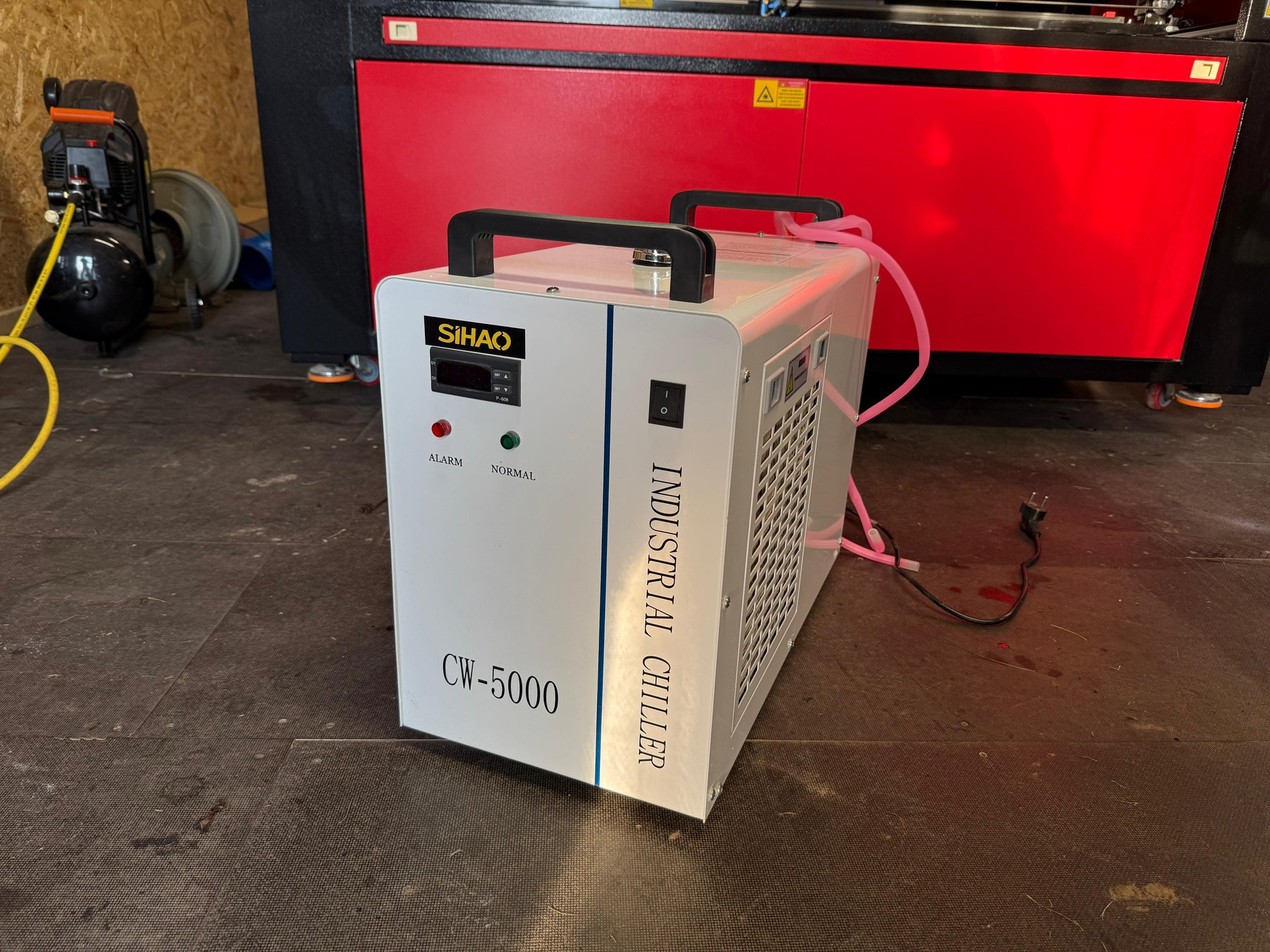 - Ūdens plūsmas drošības sensors, kas neļauj ieslēgt lāzeriekārtu, ja dzesētājs nav ieslēgts.